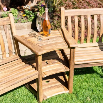 Albany Companion Set představuje kombinaci tradičního designu a odolného provedení pro venkovní prostory. Je vyroben z kvalitního tmavého akáciového dřeva, které se vyznačuje pevností, trvanlivostí a atraktivní kresbou letokruhů, jež dodává každému kusu jedinečný vzhled. Sada sestává z 1× Albany Companion Set – dvou lavic propojených středovým stolkem s otvorem na slunečník, díky čemuž je ideální pro sdílení odpolední kávy nebo večerního nápoje. Díky rozměrům 1790 mm šířky, 870 mm výšky a 720 mm hloubky je sada stabilní a pohodlná pro posezení venku. S celkovou hmotností 38 kg poskytuje pevnou konstrukci určenou pro každodenní venkovní použití. 5letá záruka poskytuje jistotu kvality a dlouhé životnosti při užívání v zahradách a na terasách.