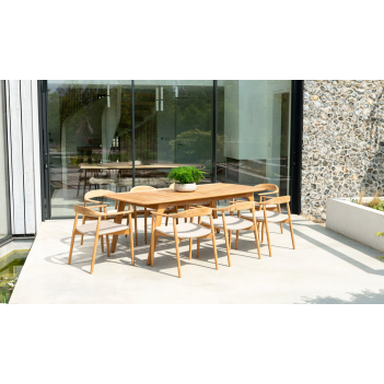 Stůl Dana Dining Table 2,15 × 1,0 m je navržen pro pohodlné stolování na čerstvém vzduchu. Teakové dřevo vyniká přirozenou odolností vůči povětrnostním vlivům a dlouhou životností. Obdélníkový tvar poskytuje dostatek prostoru pro více osob a umožňuje flexibilní uspořádání sezení. Minimalistické linie a kvalitní zpracování z něj činí nadčasový prvek venkovního interiéru. Rozměry: šířka 2150 mm, výška 740 mm, hloubka 1000 mm. 10letá záruka garantuje kvalitu a spolehlivost.