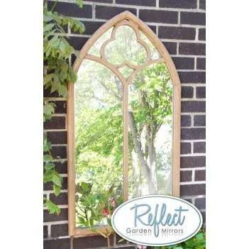 Změňte svůj domov na hrad s tímto nápadným gotickým zrcadlem. Vyrobeno ze dřeva a skla s přírodním povrchem, toto zrcadlo se jistě stane úžasným kouskem doplněk vaší zahrady na mnoho let. Když je zrcadlo namontováno na plot nebo zeď, vypadá jako skutečné okno s výhledem do jiné zahrady a dodává menším zahradám iluzi hloubky.