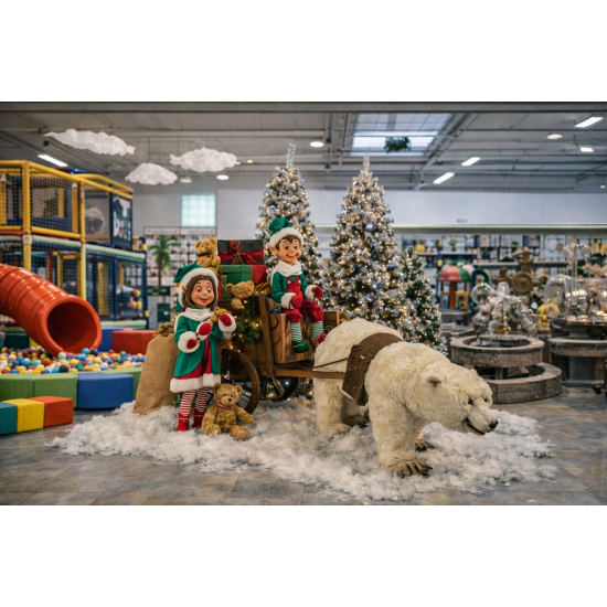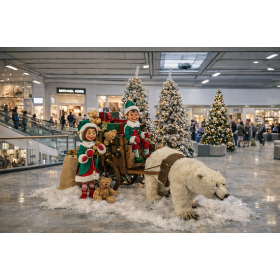 Polar Christmas Express je prémiová animatronická vánoční scéna z kolekce Creation Group, která vypráví příběh o Santových pomocnících – elfech – a ledním medvědovi při přepravě dárků. Scéna obsahuje dva elfy, jednoho ledního medvěda, jeden dřevěný vozík a vánoční dárky, takže skvěle funguje jako hlavní prvek sezónní instalace. Materiál je plyš, určení Indoor a použití Animatronic. Rozměry: L 125 × W 230 × H 150 cm. Creation Group vytváří dekorace s příběhem, které zaujmou publikum všech věkových kategorií.