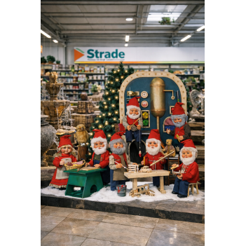 Animatronická scéna Santa’s Workshop byla vytvořena jako dominantní prvek vánočních dekorací v komerčních a veřejných prostorách. Zobrazuje tradiční dílnu Santa Clause, kde jeho pomocníci pracují na výrobě hraček, čímž vzniká ucelený vánoční příběh. Díky animatronickému provedení scéna nepůsobí staticky, ale přirozeně ožívá pohybem postav, což výrazně zvyšuje atraktivitu celé instalace.