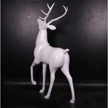 Royal Stag v lesklé bílé barvě je působivá dekorativní socha ideální pro vánoční instalace, zimní dekorace a tematické vánoční grotty. Díky rozměrům L 136 x W 79 x H 213 cm a konstrukci z odolné fiberglass resin je vhodná pro vnitřní i venkovní použití.