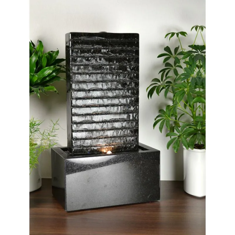 Stěna z přírodního kamene Blue in the Night vyvolává emoce a vyzařuje radost ze života. Vyrobeno v Rakousku ze slavné žuly Blue in the Night. Charakteristický je barevně sladěný žulový prvek jímky a kamenné mísy. Praktické jsou kompaktní rozměry komor z přírodního kamene, které umožňují snadnou instalaci. Voda protéká celým zdrojovým prvkem. Díky tomu lze tuto studnu efektivně využít i jako zvlhčovač vzduchu. Osvětlení lze kdykoli zapnout nebo vypnout, a to i s tekoucí vodou.