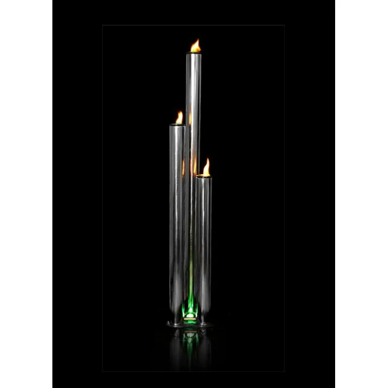 Blikající plameny nahoře a prosakující voda po stranách nerezového sloupu vytvářejí úžasný efekt