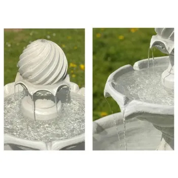 Roztomilá vodní fontána se třemi úrovněmi, vyrobená z vysoce kvalitní organické pryskyřice, která je velmi odolná, lehká a odolná, odolná vůči UV záření a mrazu. Má klasický design třípatrové fontány s krásným povrchem každé z úrovní.