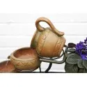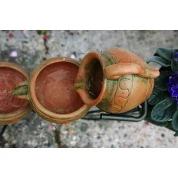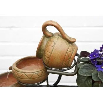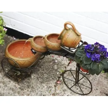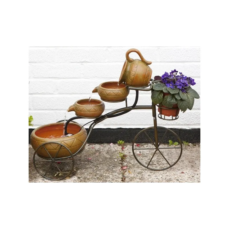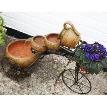 Tato dekorativní fontána jistě upoutá pozornost vašich sousedů a přátel. Kolem rámu kola se bude dařit popínavým rostlinám, jako je plamének a zimolez, které dodají extra kouzlo. Voda plynule protéká čtyřmi hrnci a shromažďuje se v největší misce na dně.