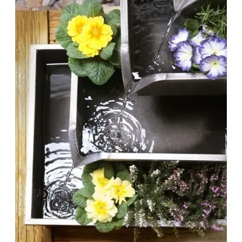 Tato ručně vyrobená fontána dokonale splyne s vaší zahradou díky integrovaným květináčům. Užijte si zvuk vody z těchto čtyř úrovní fontány, která vám také dává možnost pěstovat drobné bylinky a další drobné rostlinky.