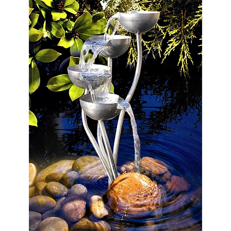 Výše uvedené ceny jsou včetně vodotrysků a čerpadel.Kaskádové hrnky lze použít jak do jezírka v jezírku, tak i zakrytý prvek kaskády/fontány k zapuštění do země.K této sestavě je potřeba štěrková nádrž (tj. že čerpadlo čerpá relativně vyčištěnou vodu)