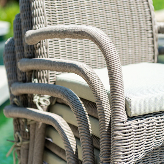 Křeslo Hazelmere Stacking Armchair je stylové a funkční venkovní křeslo, které spojuje klasický pletený vzhled s praktickou hliníkovou konstrukcí a komfortní poduškou. Díky lehkému provedení a možnosti stohování je ideální pro víceuživatelské zahradní sety, terasy nebo balkony, kdy můžete křesla snadno skládat na sebe a ušetřit místo mimo sezónu. Konstrukce z odolného hliníku s práškovým nástřikem a 4 mm pletením zajišťuje dlouhou životnost a odolnost vůči povětrnostním vlivům. Vysoká opěrka a ergonomický tvar podporují pohodlné posezení během venkovních jídel nebo relaxace. Produkt obsahuje 1 křeslo Hazelmere s polštářem a je navržen tak, aby doplnil stolky a další prvky z kolekce Hazelmere. Rozměry: 590 mm × 850 mm × 590 mm. 3letá záruka potvrzuje kvalitu a spolehlivost tohoto venkovního nábytku.