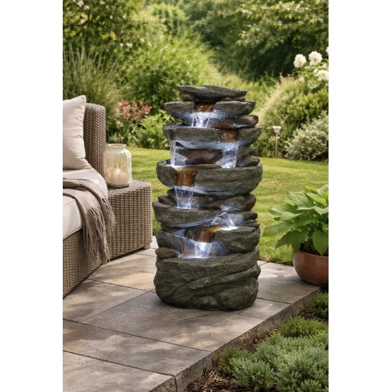 Integrované LED osvětlení vytváří večer příjemnou atmosféru a zvýrazňuje pohyb vody. Napájení ze sítě umožňuje nepřetržitý provoz. Ideální pro soukromé i komerční prostory.