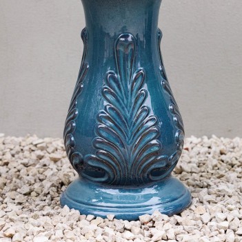 Fontána Leet (výška 115 cm × šířka 59 cm × hloubka 59 cm, průměr 59 cm) je elegantní třípatrový vodní prvek z kvalitní keramiky v modré barvě. Kaskádový design umožňuje plynulé proudění vody mezi jednotlivými úrovněmi, čímž vytváří uklidňující zvuk i vizuální efekt. Součástí je čerpadlo o výkonu 650 LPH a integrovaná nádrž, díky čemuž je systém plně samostatný a snadno instalovatelný. LED osvětlení navíc zvýrazňuje proud vody i ve večerních hodinách.