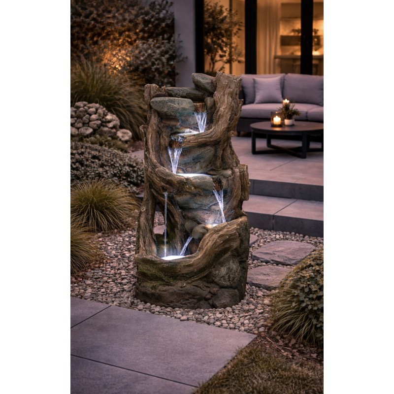 Drumbeg Rock Falls je elegantní zahradní fontána inspirovaná přírodními skalami, která přináší uklidňující atmosféru do venkovního prostoru. Rozměry L 45 x W 34 x H 98 cm umožňují umístění na terasu, balkon nebo zahradu. LED osvětlení zvýrazňuje proud vody ve večerních hodinách. Vyrobena z odolné pryskyřice, vhodná pro venkovní použití. Napájení ze sítě zajišťuje stabilní provoz.