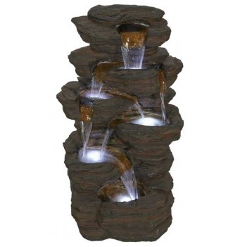 Northampton Slate Multifalls je elegantní zahradní fontána inspirovaná přírodním břidlicovým kamenem s realistickým víceúrovňovým prouděním vody. Rozměry L 42 x W 31 x H 77 cm umožňují umístění na zahradě, terase i patio. LED osvětlení zvýrazňuje vodní efekt po setmění. Odolná konstrukce z pryskyřice zajišťuje dlouhou životnost.