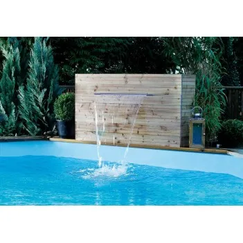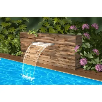 Jedná se o vodopádový design s dlouhou akrylovou hubicí a LED osvětlením pro montáž na bazén nebo jezírko, včetně montážních držáků pro snadnou instalaci vodopádu. Přípojka 1 1/2 hadice je dole, přívod vody je přes zpětný okruh bazénového / jezírkového filtračního systému. LED pásek lze bez problémů nainstalovat nebo vyměnit ze strany pouzdra.