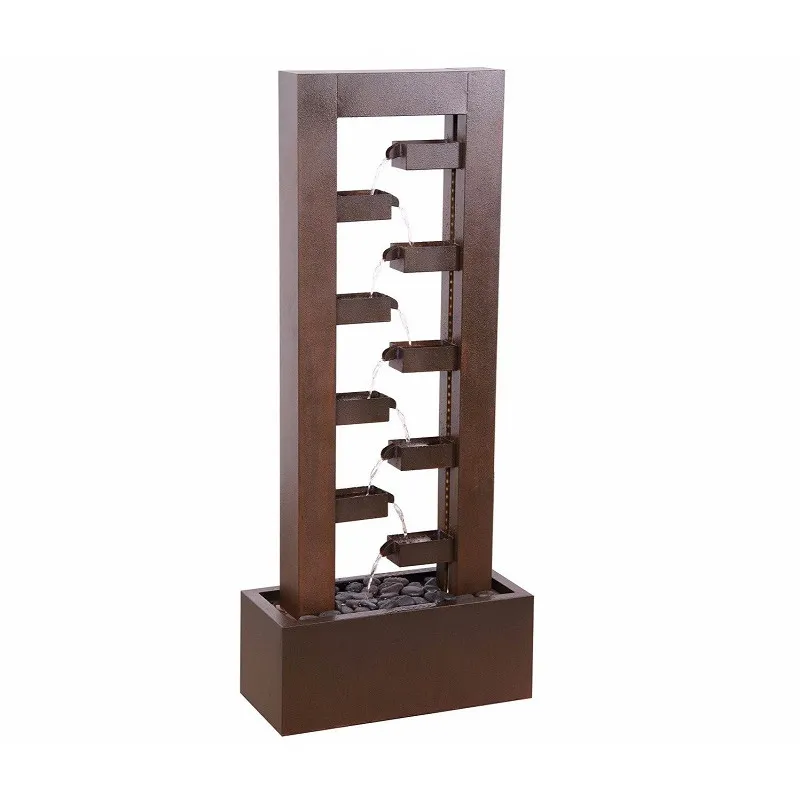 Tato ohromující vodní kaskáda je plně soběstačná a vyrobená z oceli Corten, která poskytuje velkolepý a jedinečný vzhled. Jak voda ladně stéká po dekoraci, Corten ocel vhodně vytváří vrstvu rzi, která oxiduje povrch, díky čemuž je vodotěsná a odolná proti korozi a zároveň jí dodává nádherný rezavý vzhled.