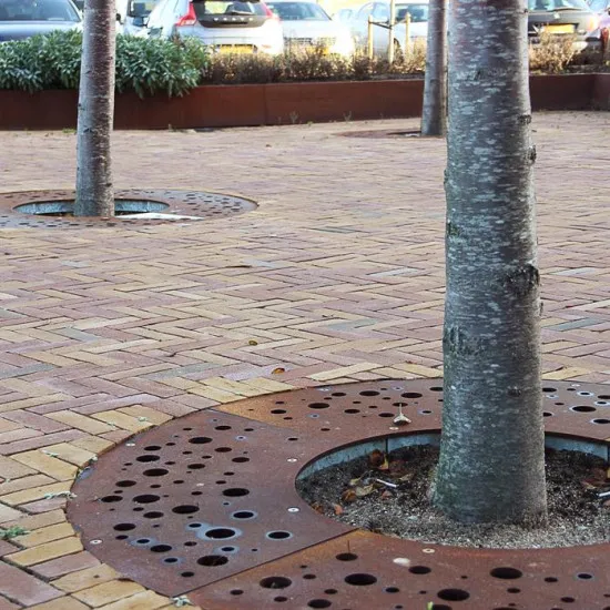 Silná ocel Corten (10 mm) je ideální pro výrobu stromových mříží.