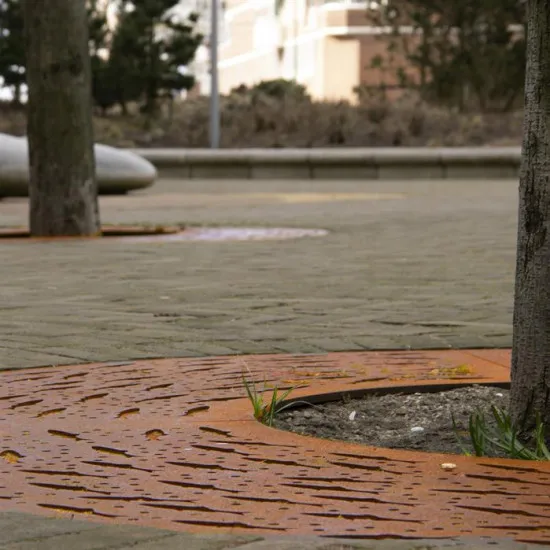 Silná ocel Corten (10 mm) je ideální pro výrobu stromových mříží.
