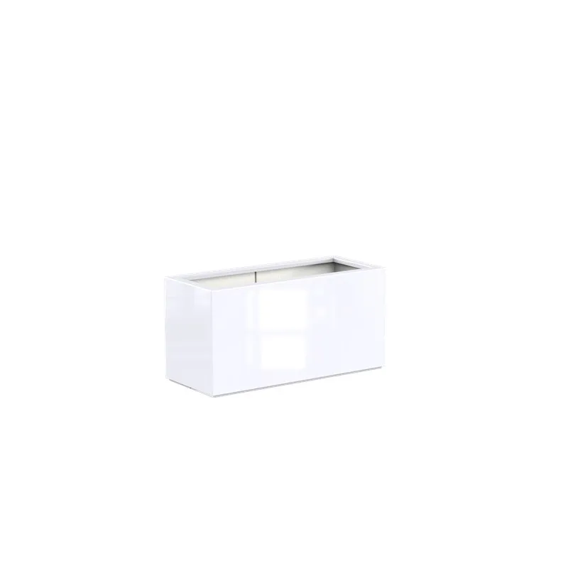 Horní okraj těchto květináčů je dvakrát převrácený, což jim dodává skvělý nadčasový vzhled. Květináče jsou vyrobeny z vysoce kvalitního zesíleného sklolaminátu. Vzhledem k tomu, že výztuž byla rozšířena do rohů, tyto rohy se nemohou roztrhnout. Květináč je zcela vybarvený a proto si zachová svou barvu. Standardně jsou všechny lesklé skleněné kelímky dodávány v RAL 9016.
