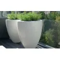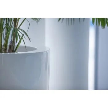 Horní okraj těchto květináčů je dvakrát převrácený, což jim dodává skvělý nadčasový vzhled. Květináče jsou vyrobeny z vysoce kvalitního zesíleného sklolaminátu. Vzhledem k tomu, že výztuž byla rozšířena do rohů, tyto rohy se nemohou roztrhnout. Květináč je celý barevný, a proto si svou barvu zachová. Standardně jsou všechny lesklé skleněné kelímky dodávány v RAL 9016
