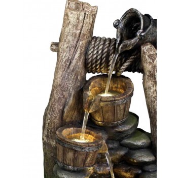 Materiál z odolné pryskyřice je navržen pro venkovní použití a odolává povětrnostním vlivům. Rustikální vzhled studny činí z fontány elegantní dekoraci zahrad, teras nebo odpočinkových zón.