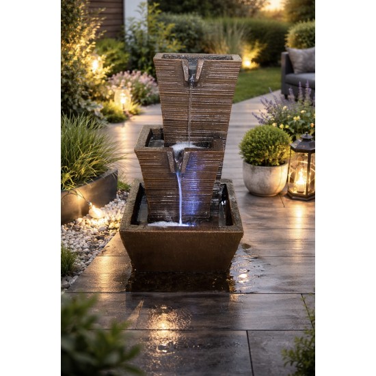 Solar Galgorm 2 Fall je stylová zahradní fontána, která přináší do venkovního prostoru uklidňující zvuk proudící vody. Kaskádová konstrukce umožňuje vodě plynule přetékat mezi jednotlivými miskami, čímž vytváří příjemnou atmosféru a vizuální efekt pohybu vody.