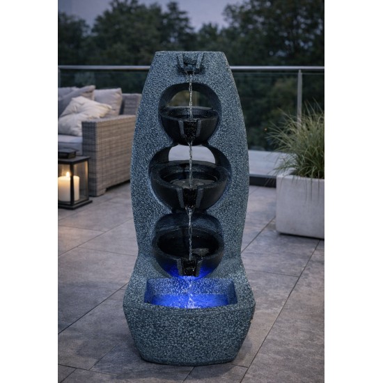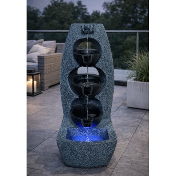 Solární fontána Glenwherry Bowls představuje stylový vodní prvek inspirovaný orientálním designem. Voda plynule přetéká mezi jednotlivými miskami a vytváří uklidňující atmosféru vhodnou pro relaxaci v zahradě.