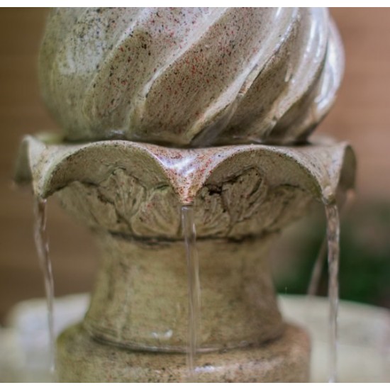 Tato klasická zahradní fontána přináší do exteriéru nadčasovou eleganci. Tři mísy vytvářejí harmonickou vodní kaskádu, která produkuje jemný, uklidňující zvuk. Povrch s efektem přírodního kamene dokonale zapadá do tradičních i moderních zahrad.
