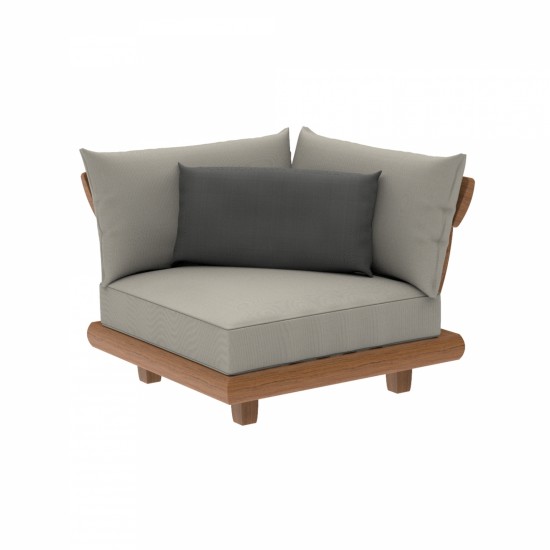 Rohový modul Sorrento se šedou poduškou spojuje klasický elegantní styl s robustní konstrukcí pro venkovní použití. Teakové dřevo je vysoce odolné vůči vlhkosti a UV záření, což zaručuje dlouhou životnost i v náročných podmínkách. Polstrování z kvalitní tkaniny poskytuje pohodlí a snadnou údržbu. Tento modul lze kombinovat s dalšími díly kolekce Sorrento a vytvářet tak sestavy přesně podle vašich představ – od menších lounge zón až po rozsáhlé rohové sedačky pro společné posezení. Kolekce Sorrento nabízí variabilitu, komfort i styl, které promění vaši venkovní terasu nebo zahradu v oázu relaxace a pohody.