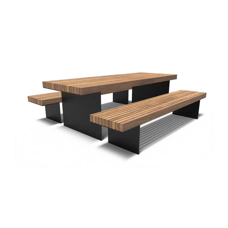 Stůl se 2 lavičkami z kortenové oceli na zahradu nebo pro použití ve veřejných prostorách: např.