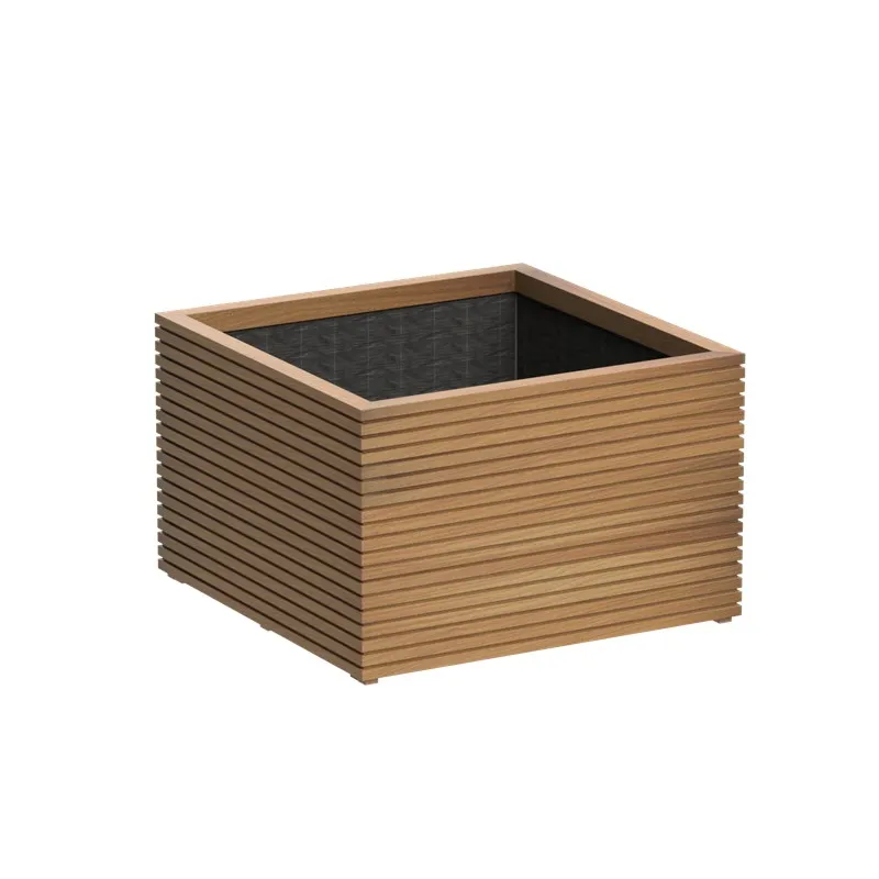 Moderní květináč vyrobený z odolného tvrdého dřeva, který dokonale zapadne do vašeho interiéru a zahrady.
