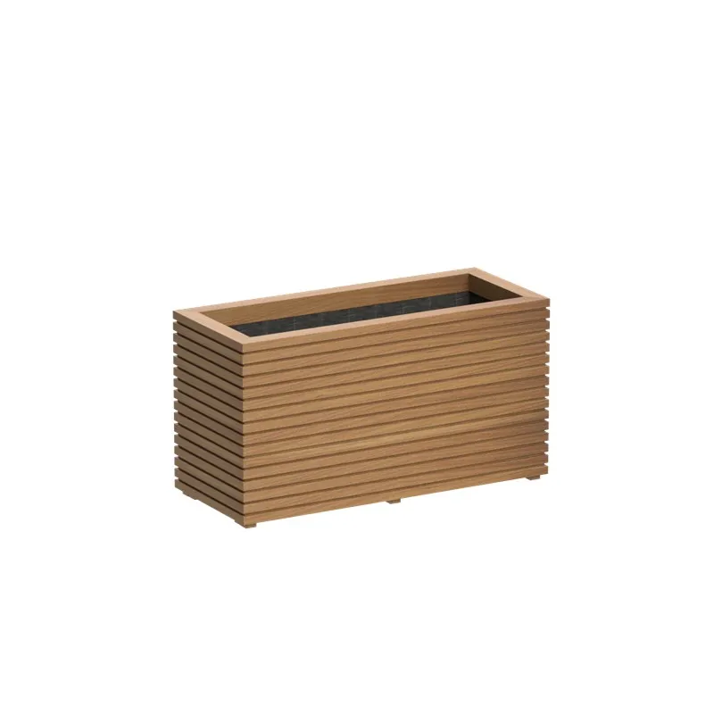 Moderní květináč vyrobený z odolného tvrdého dřeva, který dokonale zapadne do vašeho interiéru a zahrady.