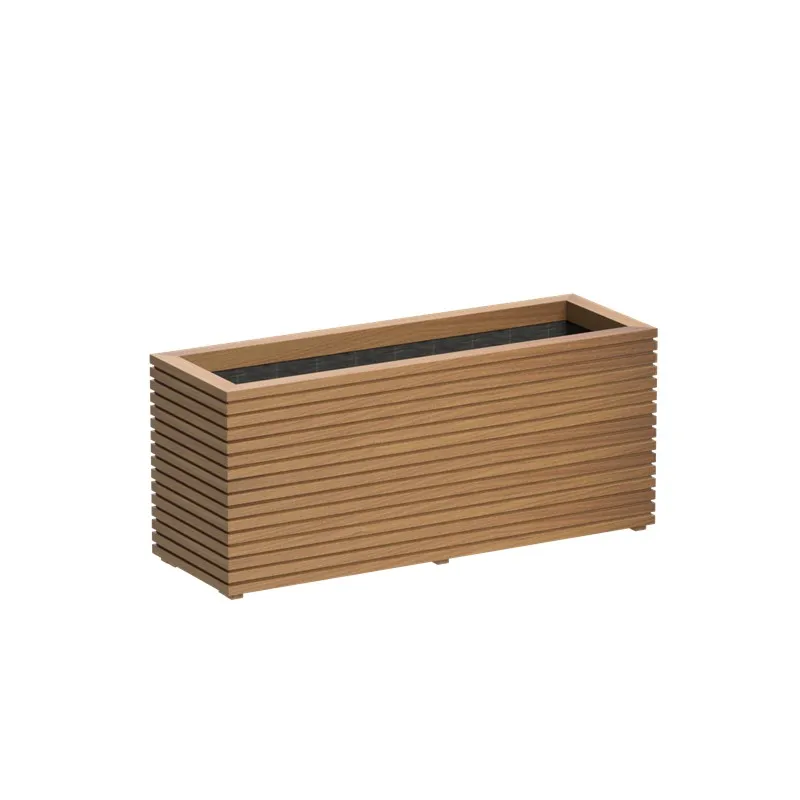Moderní květináč vyrobený z odolného tvrdého dřeva, který dokonale zapadne do vašeho interiéru a zahrady.