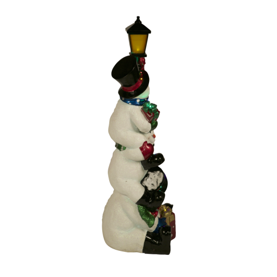 Stacked Snowmen Lamp (25 LEDS) je součástí kolekce dekorací se sněhuláky vyrobených z odolné laminátové pryskyřice a kovových prvků.