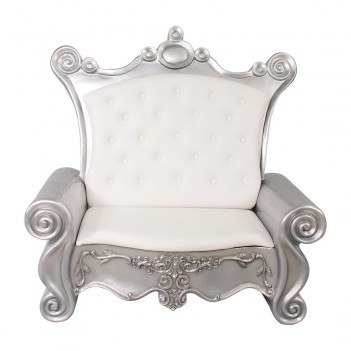 Santa Sofa (White/Silver) patří do kolekce dekorativních vánočních trůnů a sedadel vyráběných z odolné pryskyřice se skelnými vlákny a dalších pevných materiálů vhodných pro komerční instalace.