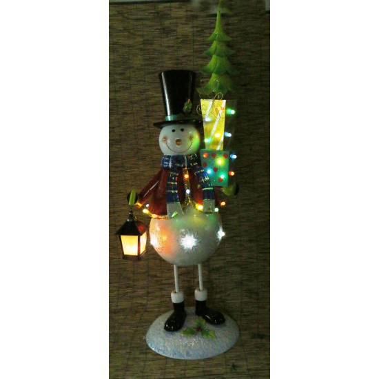 Dekorace Snowman with Tree & Lamp přináší pohádkovou zimní atmosféru do každé vánoční instalace. Usměvavý sněhulák v teplé šále drží vánoční stromek a stojí vedle stylové lampy, která jemně osvětluje celou scénu.