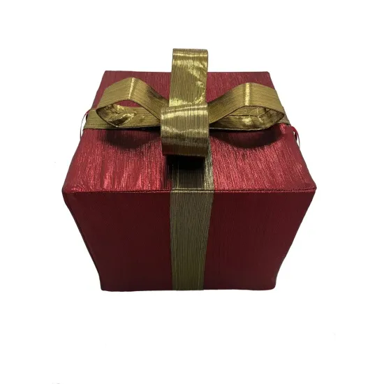 Dárková krabička z kovu a látky – červená a zlatá, 40 cm