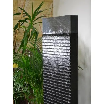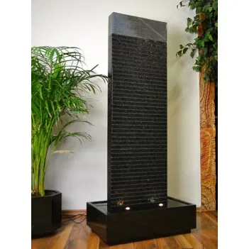 Stěna z přírodního kamene vyrobená v Rakousku z žuly African Blue in the Night v kombinaci s brazilským Azul Macaubas je novým vrcholem řady vodních stěn Vienne. Zavřete oči, poslouchejte uklidňující zvuk vody a vdechujte zdravý vzduch v místnosti. Kompaktní rozměry komor z přírodního kamene umožňují snadnou instalaci kdekoli. Voda protéká celým tělem, proto lze fontánu efektivně využít jako zvlhčovač vzduchu. Vodní stěny jsou ideální pro zlepšení kvality vnitřního vzduchu v kancelářích a praxích, protože vážou částice nečistot, ionizují vzduch a odpařují dostatek vody. To zvyšuje koncentraci a účinně zabraňuje vysušení pokožky a sliznic. Povrch drážky vytvořené na přední straně porušuje vodní film. Díky tomu jsou molekuly vody lépe absorbovány vzduchem v místnosti. Součet zatopené plochy vystačí na 40 m2 obytné plochy s výškou stropu do 260 cm. Variabel je LED světlo, které lze kdykoli zapnout a vypnout, a to i při zapnuté nebo vypnuté tekoucí vodě. Absolutní a nadčasový design vodního zařízení dokonale zapadá do moderní atmosféry bydlení. Voda funguje jako elegantní doplněk do salonu @home a wellness vybavení.