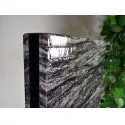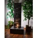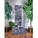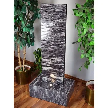 Vodní stěna z přírodního kamene byla postavena v Rakousku z unikátní červené žuly. Antracit, šedá a fialová vytvářejí nesrovnatelný vzor obrazu. Zvláštností jsou boční lišty z přírodního kamene z černé žuly. To odhaluje krásný kontrast, který dodává vodní stěně zvláštní nádech. Voda protéká celým prvkem, takže tuto dekorativní studnu lze efektivně využít jako zvlhčovač vzduchu. Osvětlení je variabilní a lze jej kdykoli zapnout nebo vypnout, i když teče voda. Vodní stěny jsou ideální pro zlepšení kvality vnitřního vzduchu v kancelářích a praxích, protože vážou částice nečistot, ionizují vzduch a odpařují dostatek vody. To zvyšuje koncentraci a účinně zabraňuje vysoušení pokožky a sliznic. Vodní zařízení jako elegantní doplněk do obývacího pokoje a vybavení wellness @home, dostupné ve 3 velikostech do výšky 160 cm.