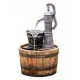 LED osvětlená voda teče z kohoutku do kbelíku s otvorem a následně do sudu. Skvělý, volně stojící vodní efekt, vyrobený z vysoce kvalitního polyresinu. Lehký a odolný zároveň pro venkovní použití, osvětlený nízkonapěťovými světly, v noci vypadá úžasně.