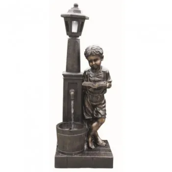 Fontána, Cascade Boy Reading at Lamp Aqua - HPWFS2396 - Tento alternativní vodní efekt bude úžasným doplňkem každé zahrady. Hnědá socha chlapce, který si čte u lucerny se zabudovaným kohoutkem a tekoucí vodou. Vyrobeno z odolného polyresinu, bude vám sloužit mnoho let