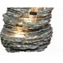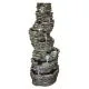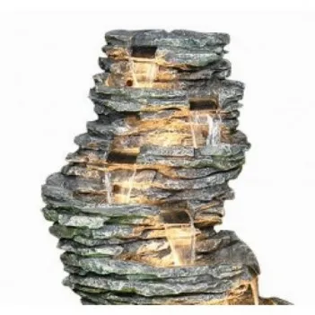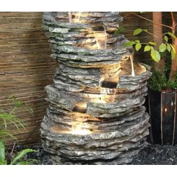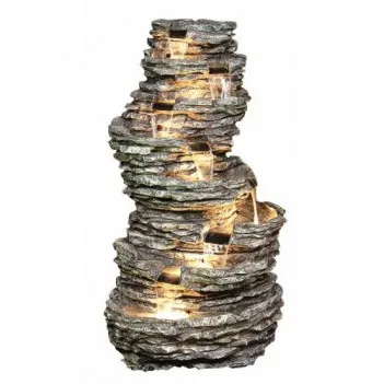 Voda osvětlená LED teče z horní nádrže a kaskádovitě klesá dolů, aby naplnila zbývajících sedm. Každá nádrž má vestavěné LED diody a fontána vypadá v noci úžasně