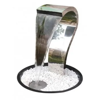 Skvělá, moderní vodní dekorace z nerezové oceli s LED osvětlenou vodou tekoucí ze zakřivené fontány.