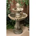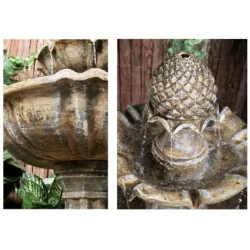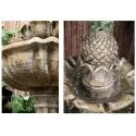 Der prächtige Brunnen wurde geschickt getarnt, um den Eindruck einer antiken Steinoberfläche zu erwecken, besteht jedoch aus hochwertigem Polyesterharz, das leicht, stark und langlebig ist. Dies ermöglicht eine einfache Montage und Installation und stellt außerdem sicher, dass es wechselnden Witterungsbedingungen standhält.