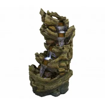 Arrangierte Baumstämme, die einen perfekten Wasserfluss erzeugen und zusätzlich mit LED-Leuchten beleuchtet werden, sind eine einzigartige Dekoration für Ihren Garten. Entspannen Sie sich beim angenehmen Geräusch fließenden Wassers.