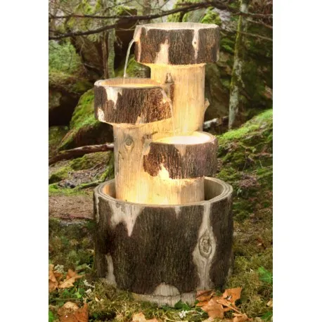 Ein Springbrunnen, eine Kaskade, die einen Baumstamm imitiert. Extrem realistisch. Beständig gegen UV-Strahlung und Frost.