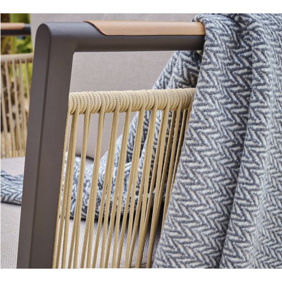 Das Bali Lounge Set 4-Piece ist ein hochwertiges Outdoor-Lounge-Set mit 1 2-Sitzer Sofa, 2 Lounge-Sesseln und 1 rechteckigem Couchtisch. Produktabmessungen: Sofa – 1800 × 710 × 710 mm, Sessel – 710 × 860 × 710 mm, Tisch – 600 × 1060 × 420 mm. Garantie: 3 Jahre. Gefertigt mit hydrophobem Seil und rostfreiem Aluminiumrahmen.