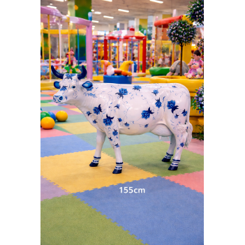 Die Kuhfigur gehört zu einer breiten Kollektion thematischer Dekorationsmodelle aus wetterbeständigem Fiberglas und Metall. Diese Produkte werden häufig für Fotomotive, Themenparks und dekorative Installationen verwendet.
