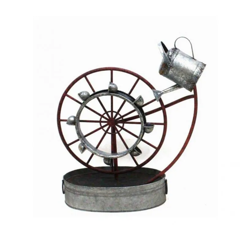 Das Wasser ergießt sich aus der Gießkanne in das Rad, sodass das sanfte Geräusch fließenden Wassers durch Ihren Garten hallt. Diese aus antikem Metall gefertigte und völlig unabhängige Funktion lässt sich leicht manövrieren, bis Sie die perfekte Position gefunden haben. Da dieses Produkt aus altem Metall besteht, kann mit der Zeit natürlicher Rost entstehen. Wir empfehlen einen jährlichen Anstrich mit Klarlack oder natürlichem Bienenwachs, um den Artikel in seinem ursprünglichen Farbzustand zu erhalten. Rosten ist der natürliche Alterungsprozess von Eisen im Außenbereich.
