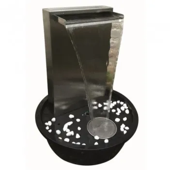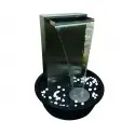 Karachi-Kaskade aus Edelstahl - Eine faszinierende Wasserdekoration mit einer Gruppe von LEDs, um das Wasser zu beleuchten, das in das darunter liegende Reservoir fließt. Aus hochwertigem Edelstahl gefertigt, wird es Ihnen viele Jahre dienen.