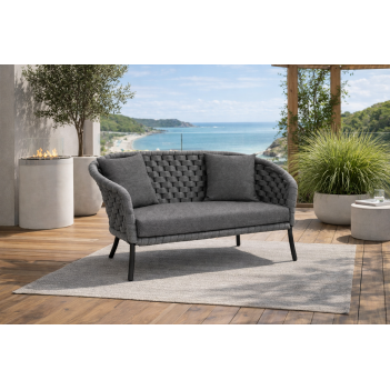 Das Cordial Luxe Hellgrau 2-Sitzer Sofa kombiniert elegantes Design mit robusten Materialien für langfristigen Einsatz im Outdoor-Bereich. Der stabile Aluminiumrahmen ist pulverbeschichtet und schützt so zuverlässig vor Korrosion und Wettereinflüssen. Das handgewebte Olefin-Flecht mit weichem Gummikern sorgt für bequemen Sitzkomfort und trocknet nach Regen rasch. Die großzügigen Abmessungen bieten Platz für zwei Personen und machen das Sofa ideal für gemütliche Garten- oder Terrassenabende. Die wasserabweisenden Kissenbezüge mit Interliner minimieren den Pflegeaufwand, sodass die Kissen bei sommerlichen Regenschauern draußen bleiben können. Ob kombiniert mit passenden Beistelltischen oder Loungesesseln aus derselben Cordial Luxe Kollektion – dieses Sofa schafft eine stilvolle Outdoor-Lounge, die Komfort und modernes Design verbindet.
